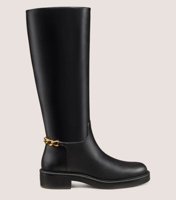 The SOLUXE CELIA BOOT is our elevated take on the classic riding boot silhouette. Defined by a polished chain detail, this knee-high style features a structured construction and is set on a reimagined sole.